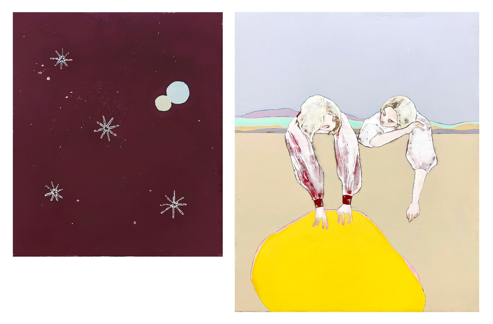 在展出的繪畫作品中,對於創作者而言,部分圖像脫離了原先草圖的形態邏輯,在重新展開的時間軸中轉化出新的敘事結構,有些保留著未完成的伏筆,它們經由「完成」來獲得意義,同時也因珍視「過去的留存與延續」而更具張力。在這樣的視角中,「完成」不再是藝術創作的終點,反而可能是過早凍結的開始。這樣的時間觀念與法國哲學家亨利·柏格森(Henri Bergson)在其《物質與記憶》(Matière et Mémoire)與《創造進化》(L’Évolution créatrice)中所提出的「綿延」(la durée)概念提出對話。柏格森指出,真實的時間並非量化可分的時刻總和,而是一種流動中的質性經驗,是情感、記憶與知覺共同組成的內在時間。因而創作在這樣的時間中不是直線向前,而是迎接不斷的來回交錯與自我不斷重疊的變化。