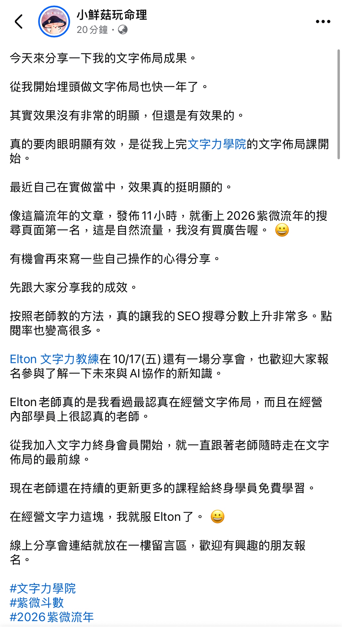 → Elton 與你分享如何用一則貼文,創造 80 萬瀏覽。