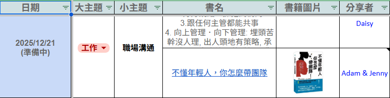 我們是「主題讀書會」,定期由書友們分享不同的主題