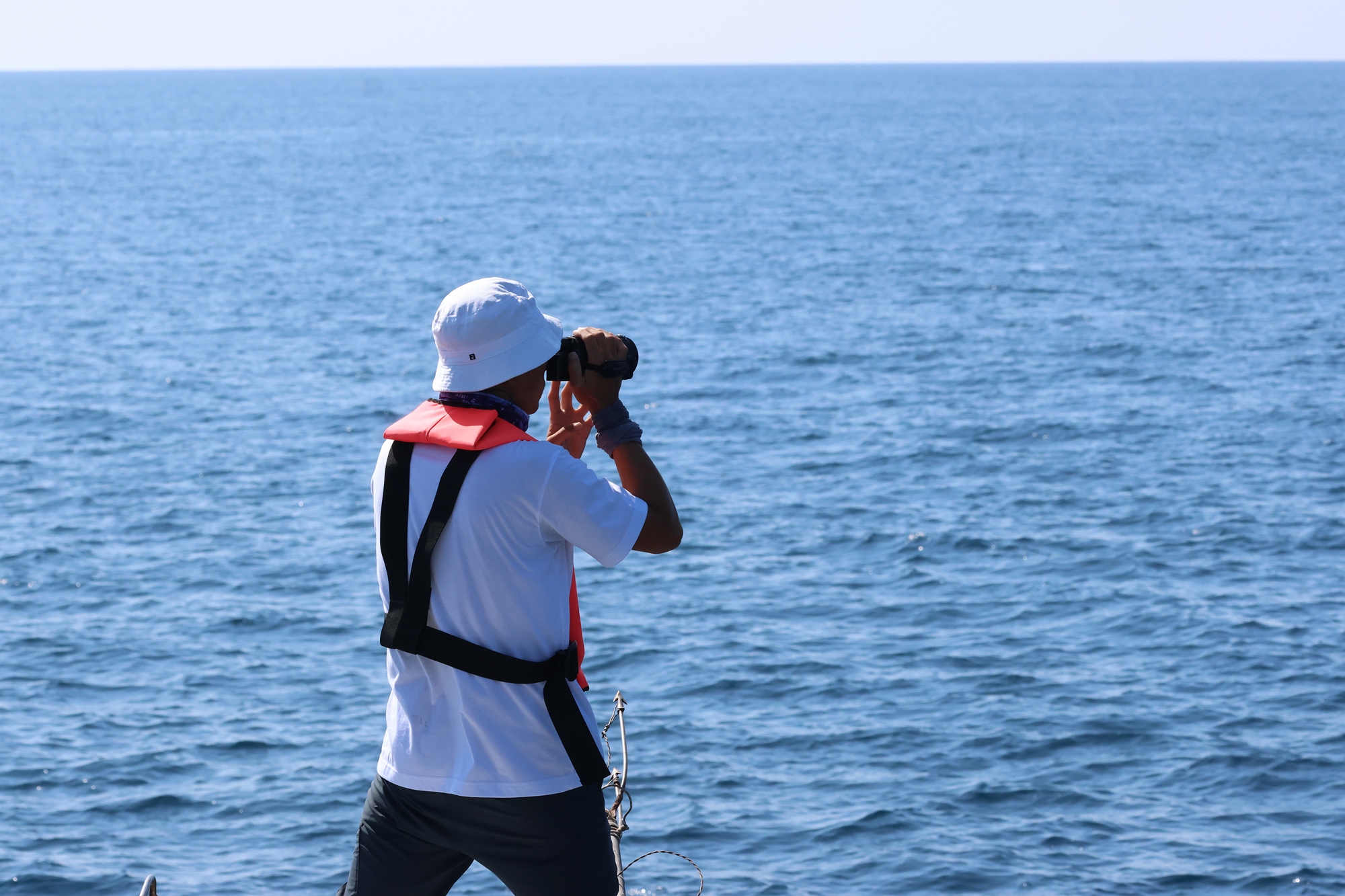 搭乘船隻至高雄海域,體驗研究人員執行調查的方式,操作望遠鏡、水質儀、濁度計等設備以及學習觀測鯨豚的技巧。透過這堂課,讓民眾對海上調查的有更清楚的認識。