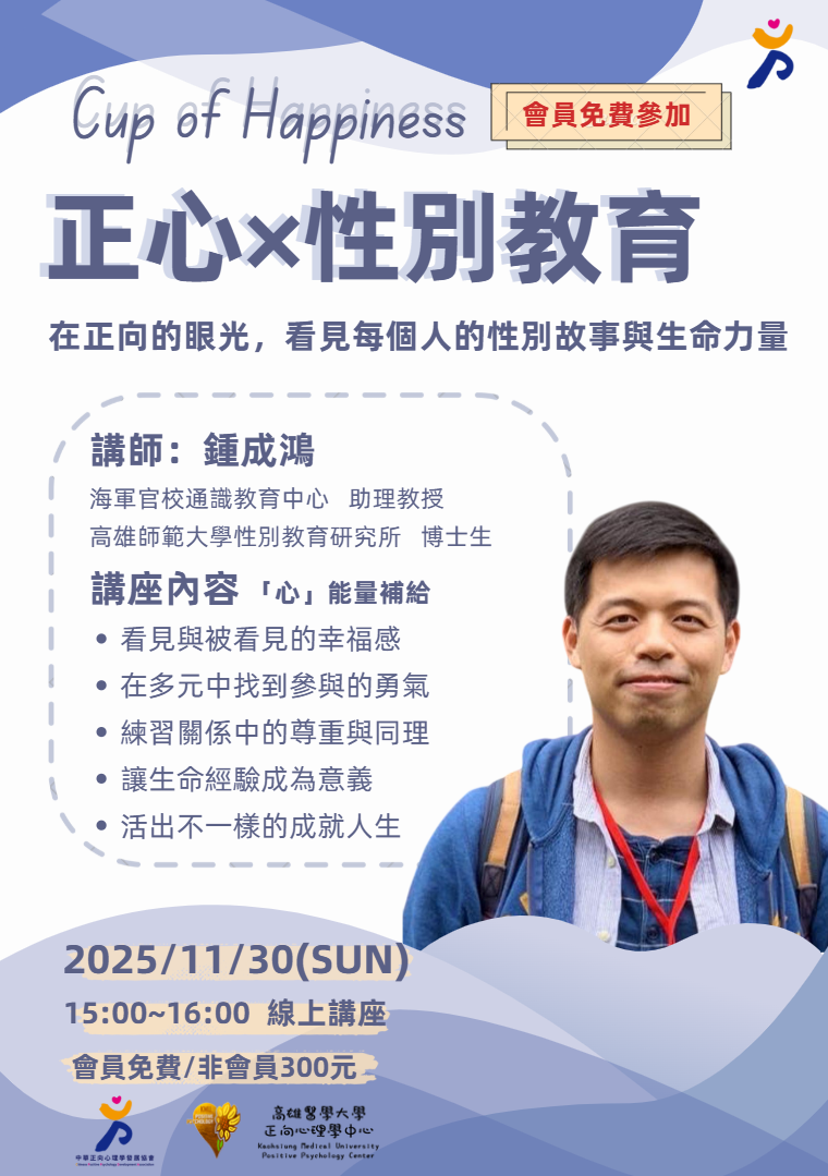 正心下午茶為中華正心協會的會員專屬福利活動~每個月固定一場,講座時長為一個小時!在2025年11月份,我們邀請到鍾成鴻講師,以「正心x心理治療」為題,帶我們重新認識政治的溫度與可能。🤩ˊ