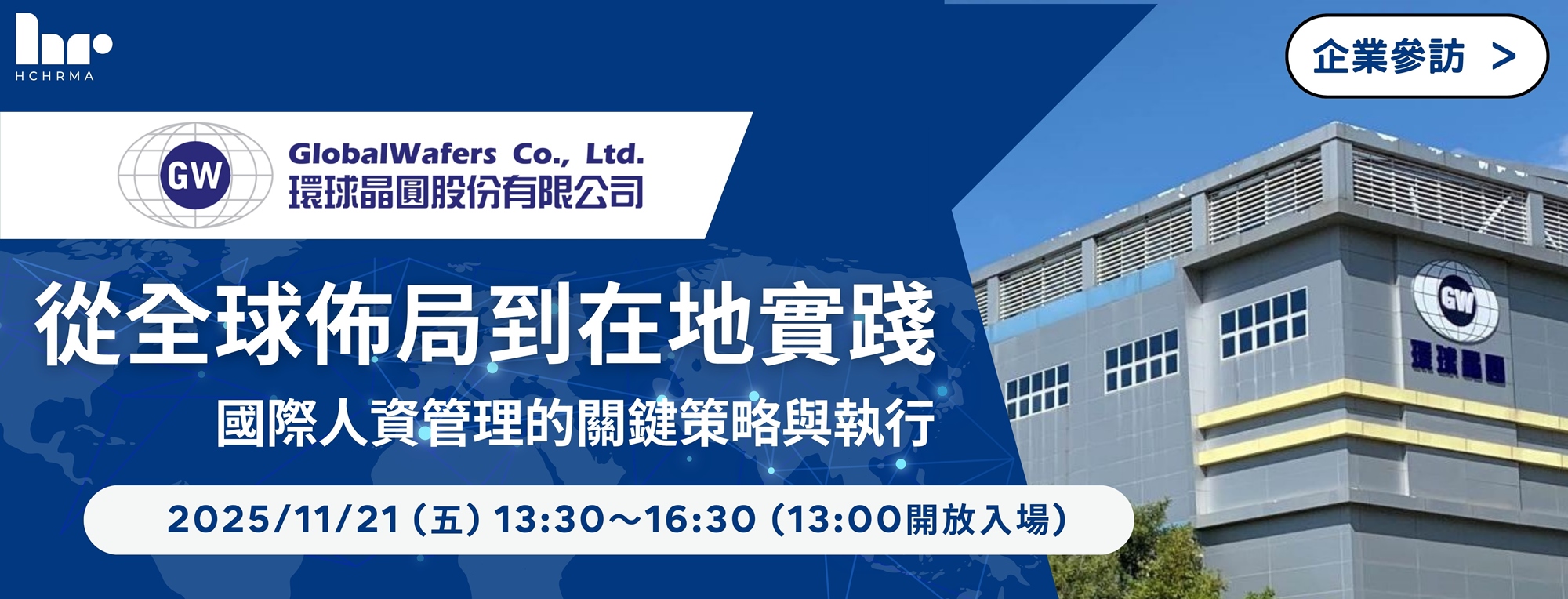 此次,我們誠摯邀請人資夥伴走進環球晶圓-《台灣No.1 全球第三的半導體矽晶圓供應商》 ,透過專業分享,共同深入交流探討企業如何在人力稀缺與產業變局之中,透過全球策略佈局,落實在地人資實踐,打造具韌性、具競爭力的組織體系。