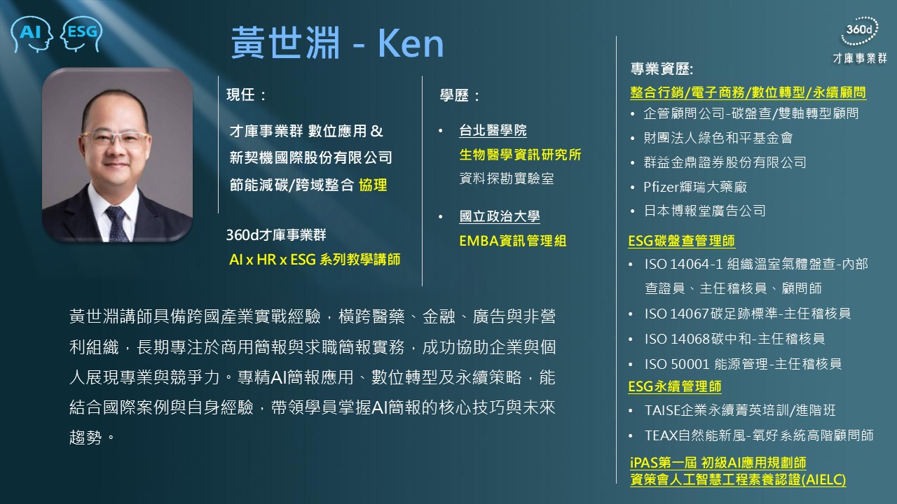🧑🏫 講師 Ken Huang(才庫資深講師 × AI 簡報教練)