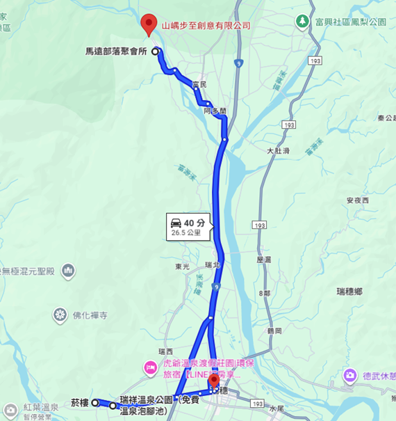 🚶♂️路線安排 | 瑞穗火車站→馬遠部落 (部落走讀微旅行+布農原民風味餐)→紅葉菸樓→紅葉福利雞蛋→瑞祥溫泉公園(泡腳)→瑞穗火車站(賦歸)