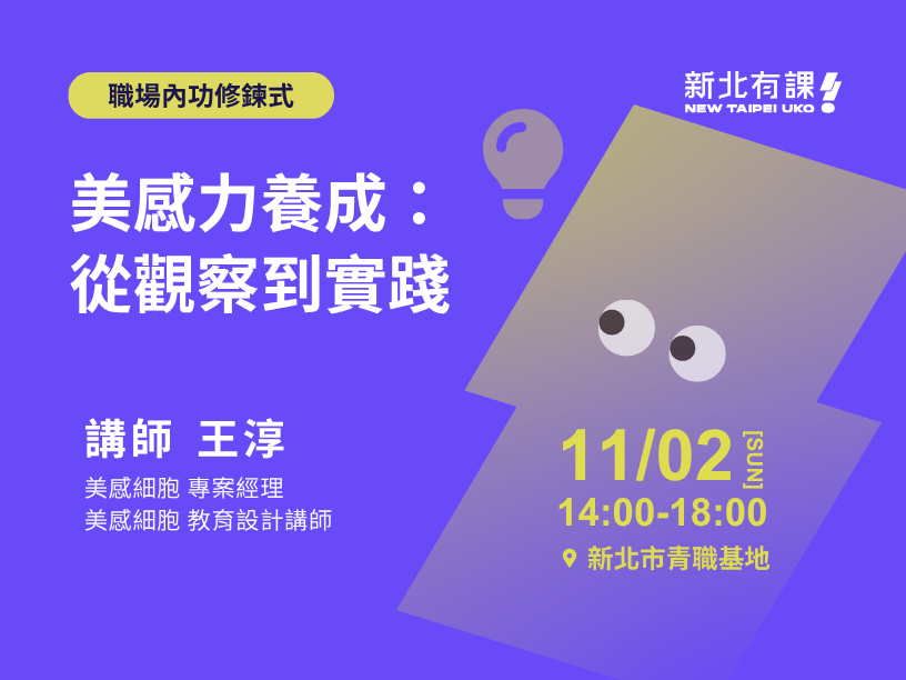 💡掌握實用設計方法:課程將介紹三種設計方法,引導學員將美感轉化為實際操作能力,並有效培養創意思維與表達能力。