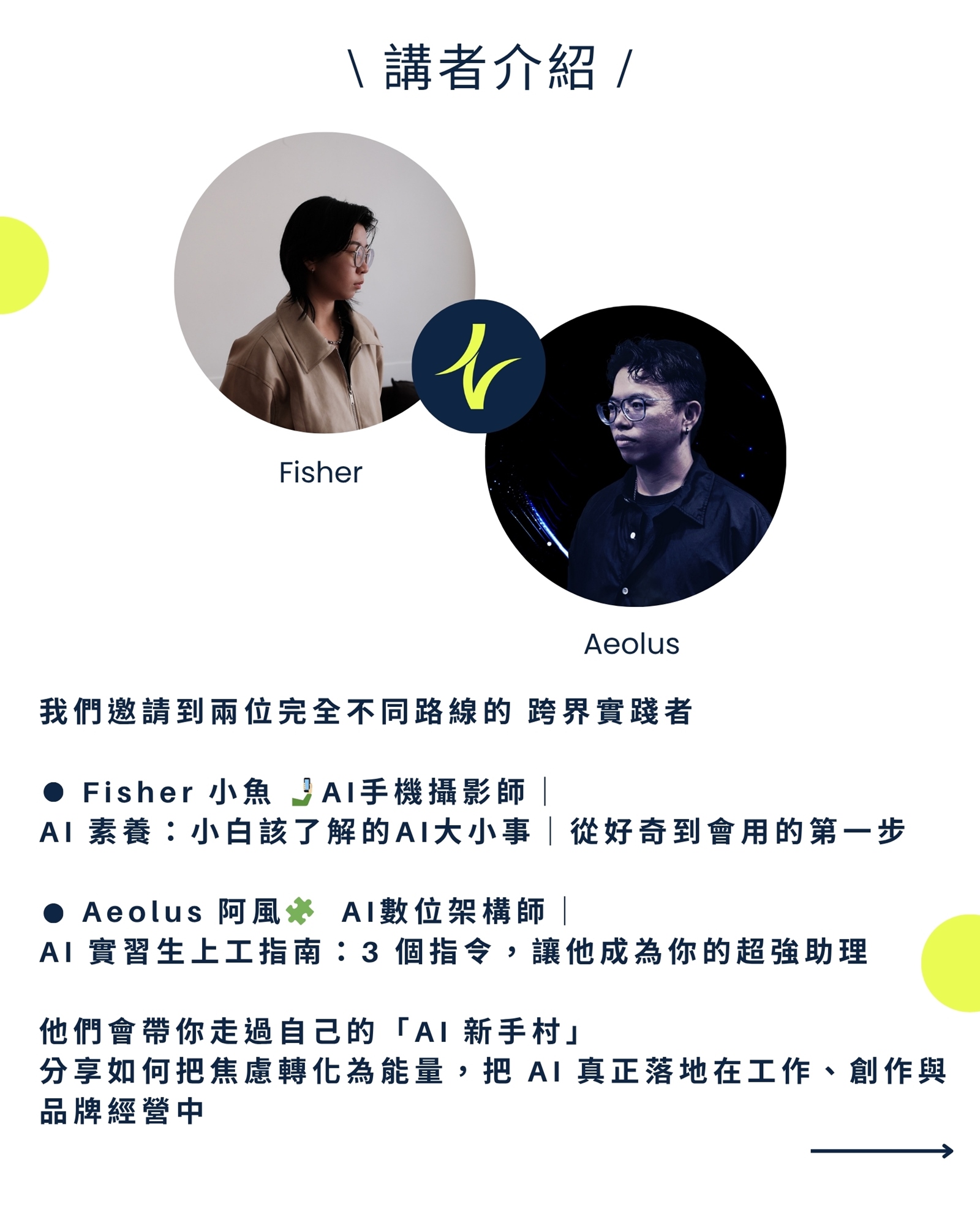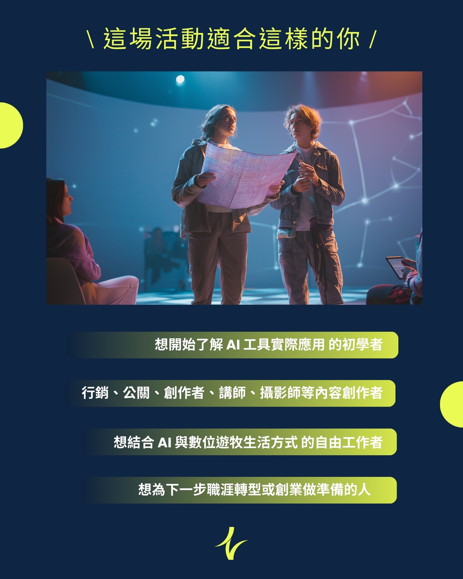 本次 NaviGrow《AI 領航員小聚:AI 小白素養》,將以「數位遊牧 × AI 實作」為核心,帶你從零開始輕鬆認識 AI。