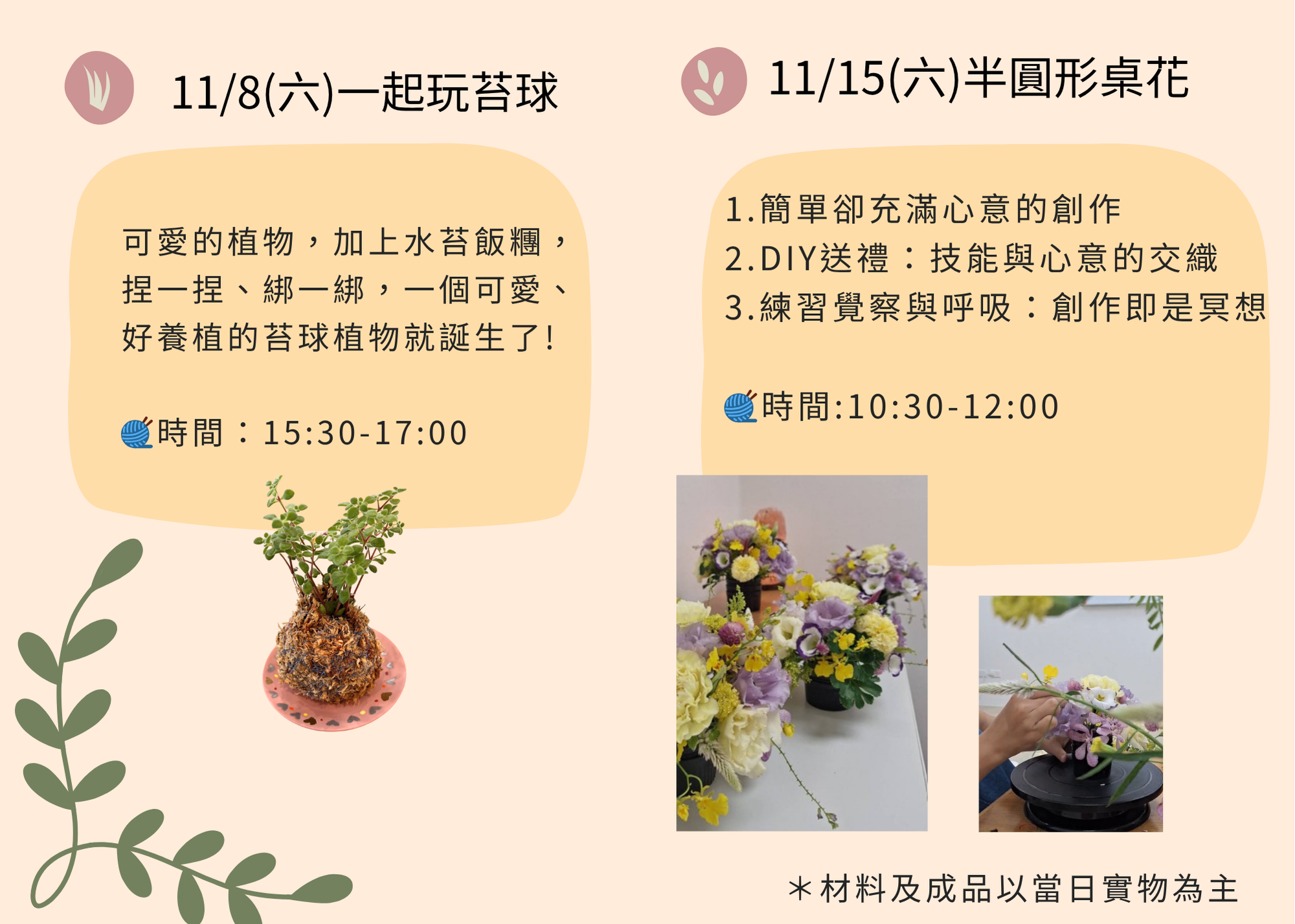 當日成品:水苔球1個(品種依現場狀況提供,不指定)