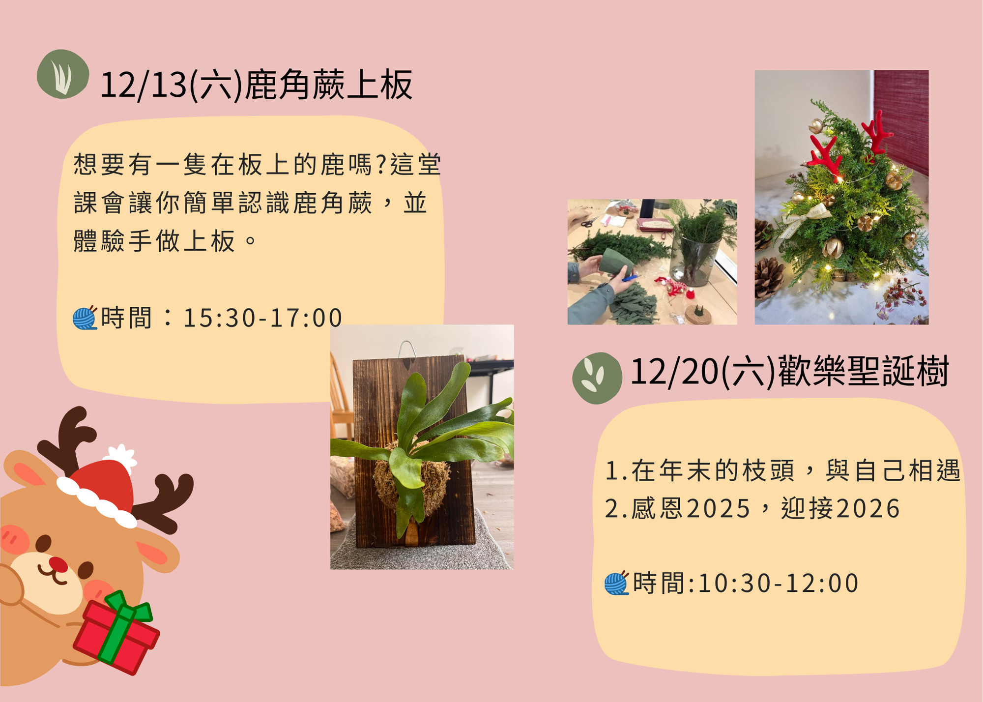 當日成品:上板鹿角蕨1個(鹿角蕨品種依現場狀況提供,不指定)