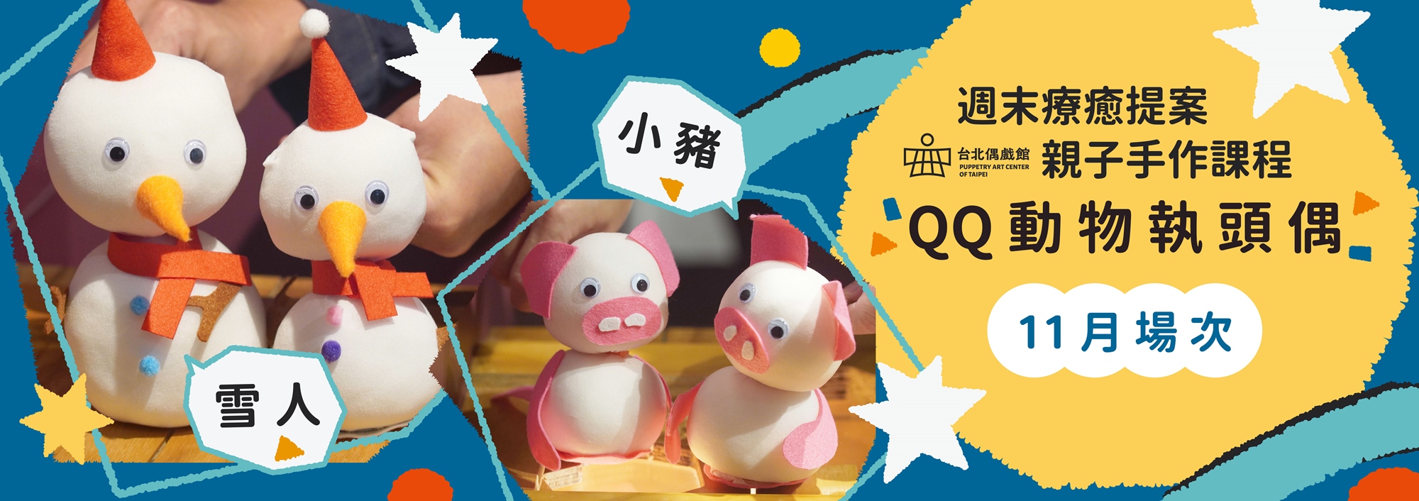 台北偶戲館週末療癒提案:親子手作課程「QQ動物執頭偶」【𝟏𝟏月場次】