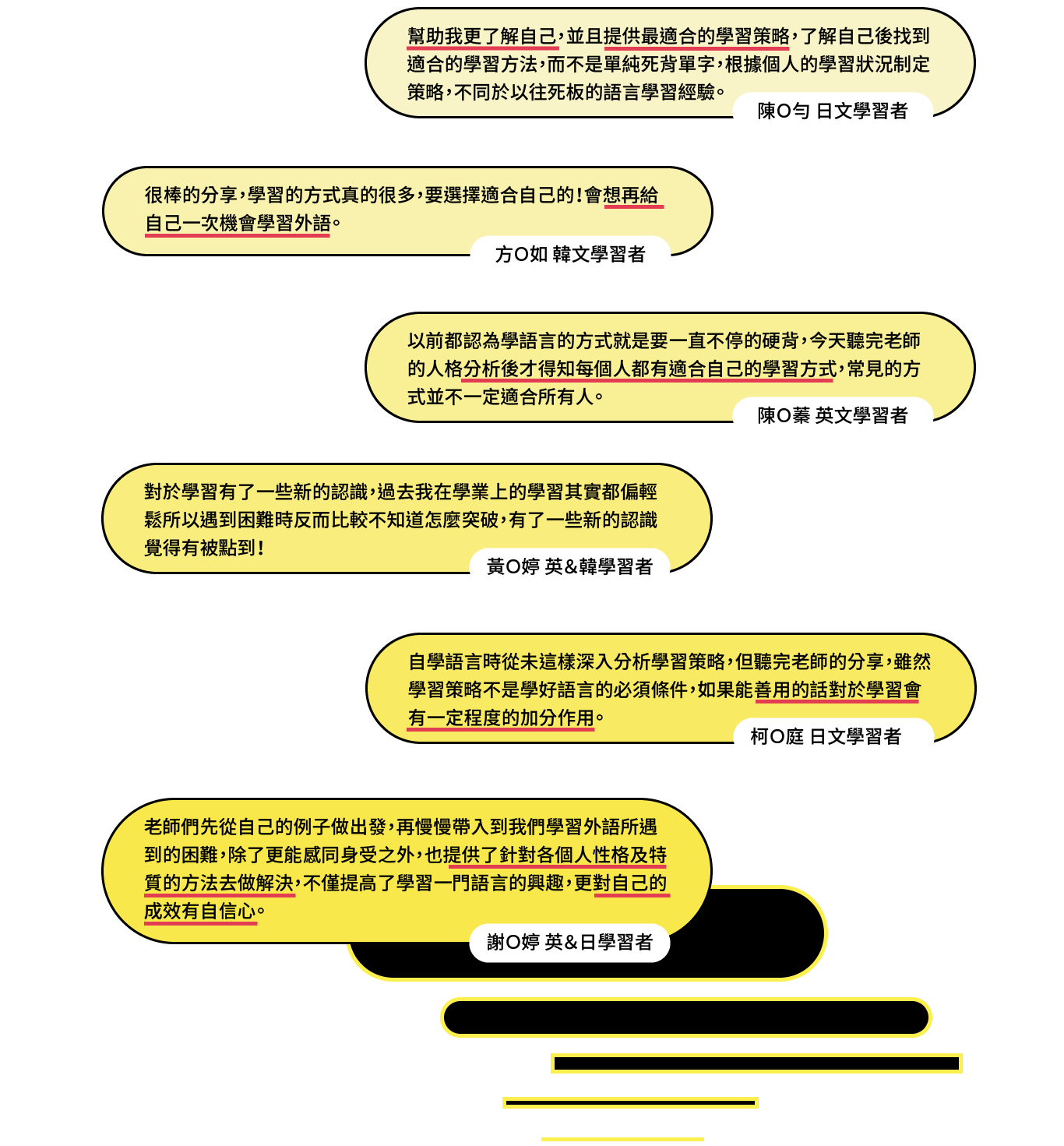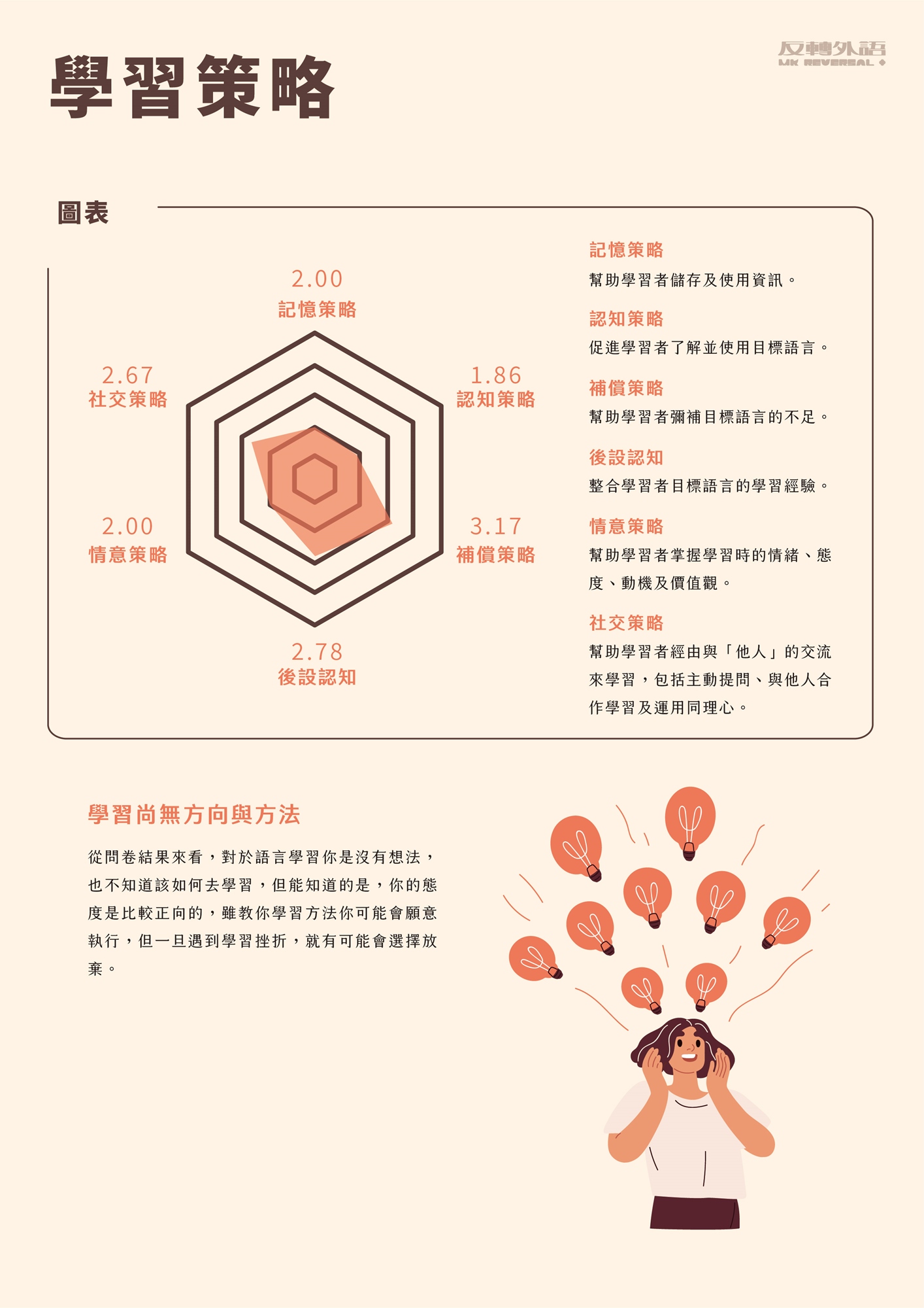 本講座將透過「語言學習策略」與「學習性格」,幫助想要有效提升外語能力的成年學習者,透過專業數據的分析檢測,找到最適合的學習方法。