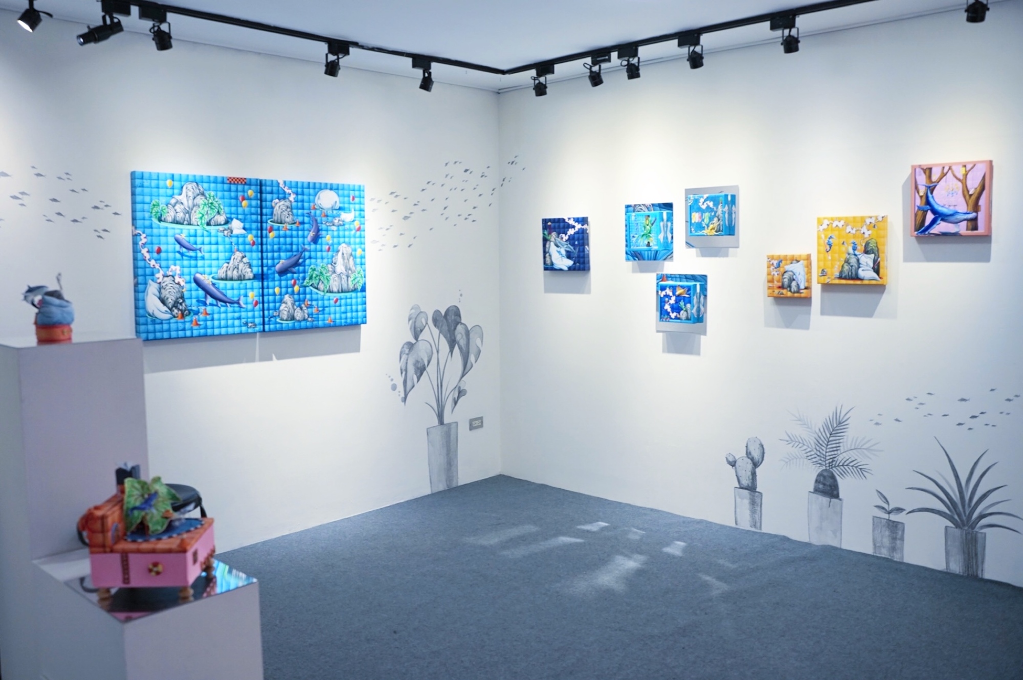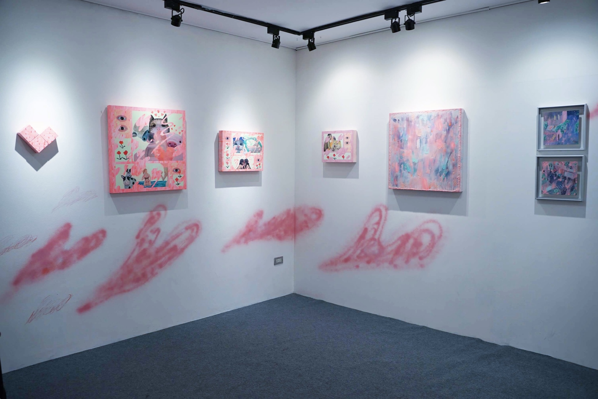 藝術家運用鮮豔的底色,象徵記憶的短暫與易逝,並將童年的塗鴉與重新造訪的場景交織在畫面中,使記憶彼此重疊,既真實又帶有夢境般的朦朧感。透過這些作品,藝術家以畫筆激起並攜帶漣漪,邀請觀者走入時間與回憶的對話,共同感受那些「被帶走的漣漪」。