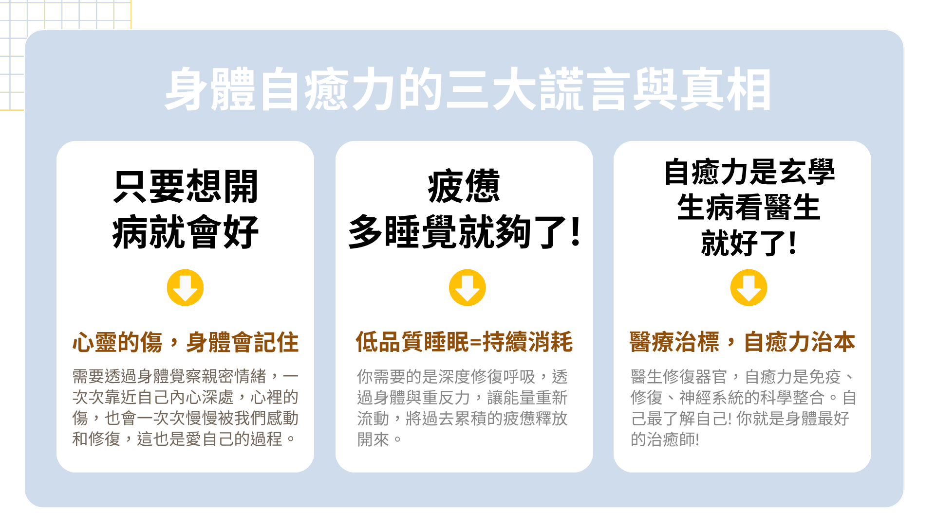 ❌ 迷思三: 「自癒力是玄學,生病看醫生就好了。」