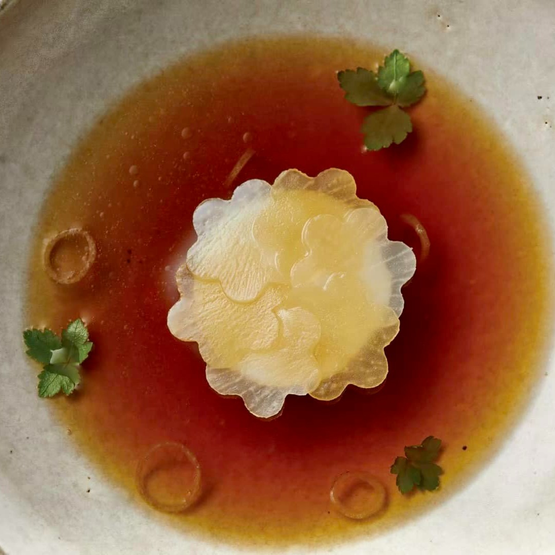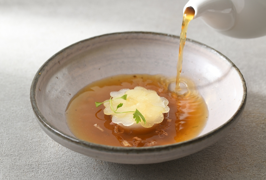 每一道料理,都是時間與土地的對話。從十年蘿蔔乾澄清雞湯到蛤蠣老蘿蔔乾手工麵,食材的本真風味被溫柔引出,帶來最純粹的溫補滋養。這是一場屬於秋冬的療癒饗宴,讓人從味蕾到心底,都被歲月的溫度輕輕安撫。