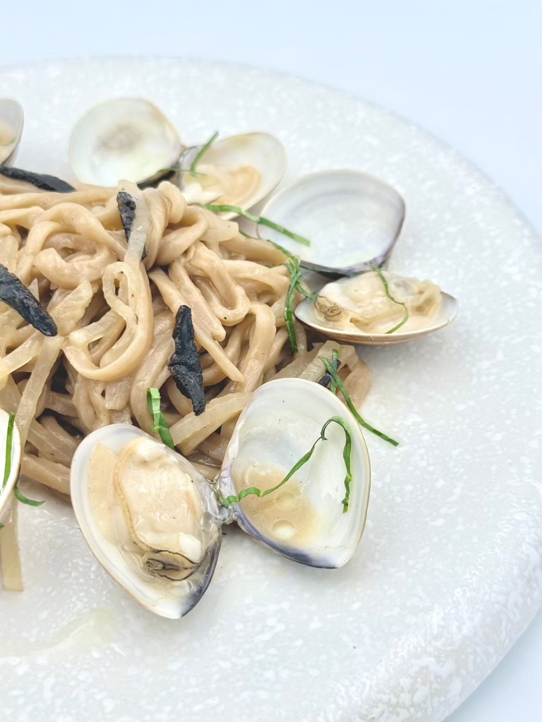取新鮮蛤蠣的海味與老蘿蔔乾的醇厚相融,風味鮮甜卻層次深遠。手工麵以雙手揉出彈韌口感,吸飽湯汁後,鹹香與甘潤交織成冬日最柔軟的記憶。每一口,都是時間與土地的溫度,靜靜溫暖著身心。