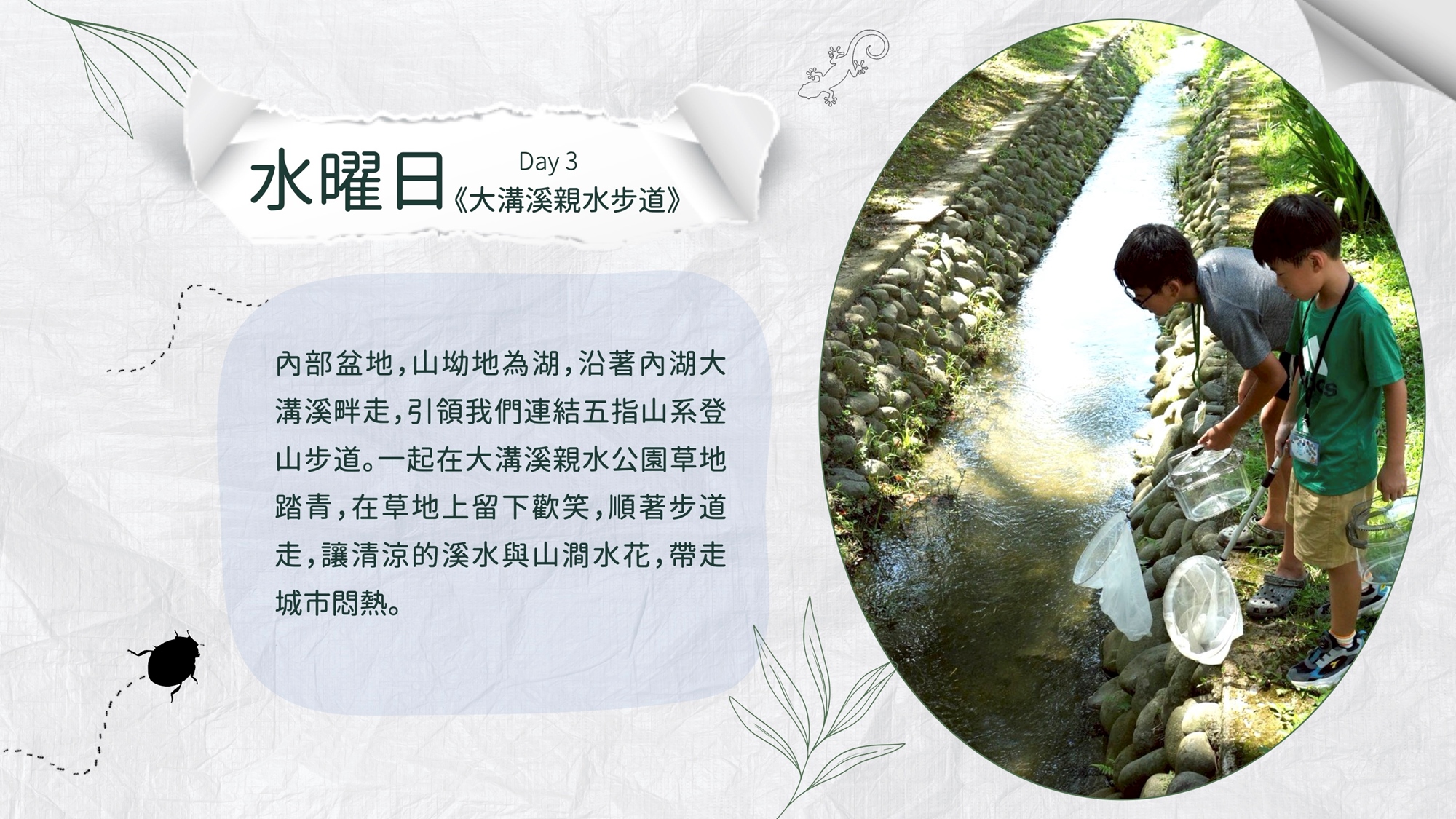 ✔ 走進生命溪流:觀察水生昆蟲與濕地植物,感受自然細微的脈動!