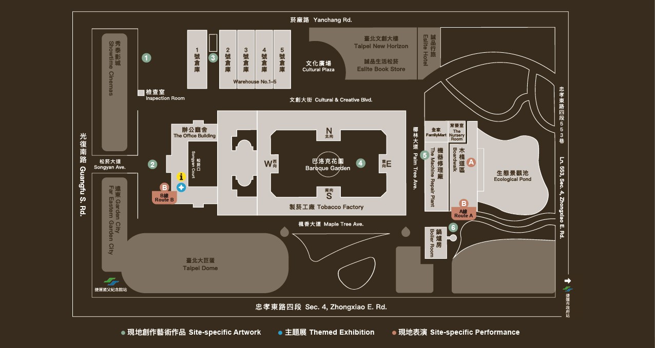 一個空間所留下的 味道、情感、氣味、氛圍,涵蓋著他的過去、現在以及未來,建築的存在疊合了過去、現在與未來的想像,它不僅僅指涉 當下,更是映射到不同時代的它。 本次的計劃中,我們企圖透過遊走的形式,帶領觀眾探索松菸至今的空間變化。