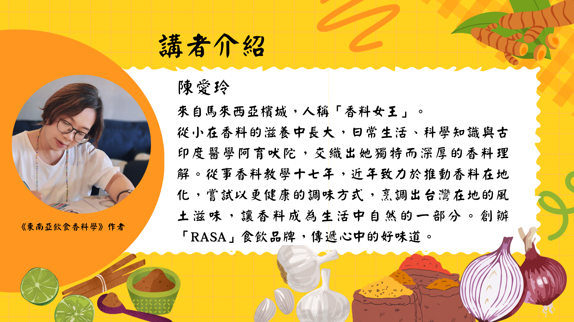 ✦主講人 | 陳愛玲 《東南亞飲食香料學》作者