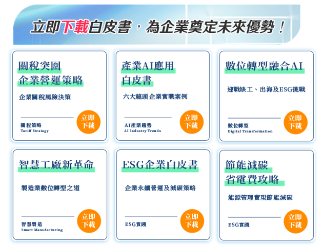 我們精選製作六份白皮書,深入洞察產業現況與未來,解析五大核心趨勢,為企業經理人提供前瞻性見解和具體策略建議。