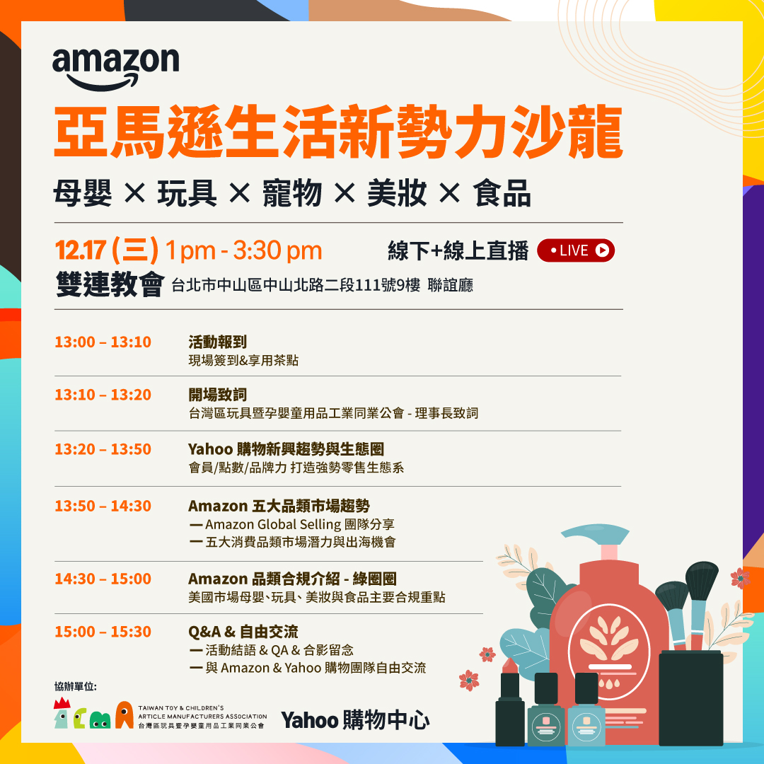 在這裡,你不只能獲得第一手的市場情報,更能與Amazon、Yahoo購物團隊面對面交流,與各領域專家建立寶貴連結。專業的分享、即時的諮詢,讓你在輕鬆自在的氛圍中,挖掘無限商機!
