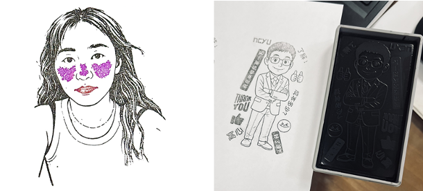 由學員自行於描圖紙繪圖後,放入曝光機完成印章海綿的刻字製作,後續組合印章海綿與印章外殼並選擇印油顏色填入即可完成獨一無二的印章作品。