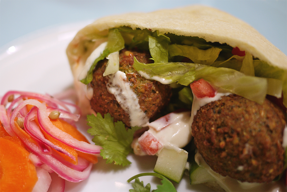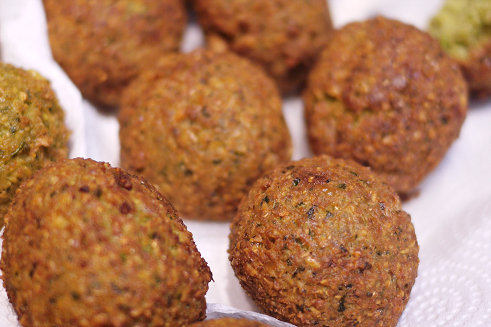 Falafel-炸鷹嘴豆泥球的起源有些爭議,通常認為它源自埃及,是科普特人在大齋期作為肉類的替代物食用,豐富的植物性蛋白質拌入香料酥炸,飽足可口。