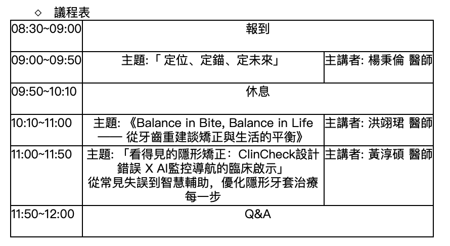 「新銳之聲」不僅代表技術的精進,更象徵對專業的誠實、對病人的責任,以及對未來的想像。這不只是一場研討會,更是一場關於「成為更好醫師」的對話。每一位講師的分享,都是新世代醫師對自我定位的回應,也是一種勇敢的宣言——專業會隨時間而成熟,但熱情與創意,正是推動隱形矯正持續前進的力量。