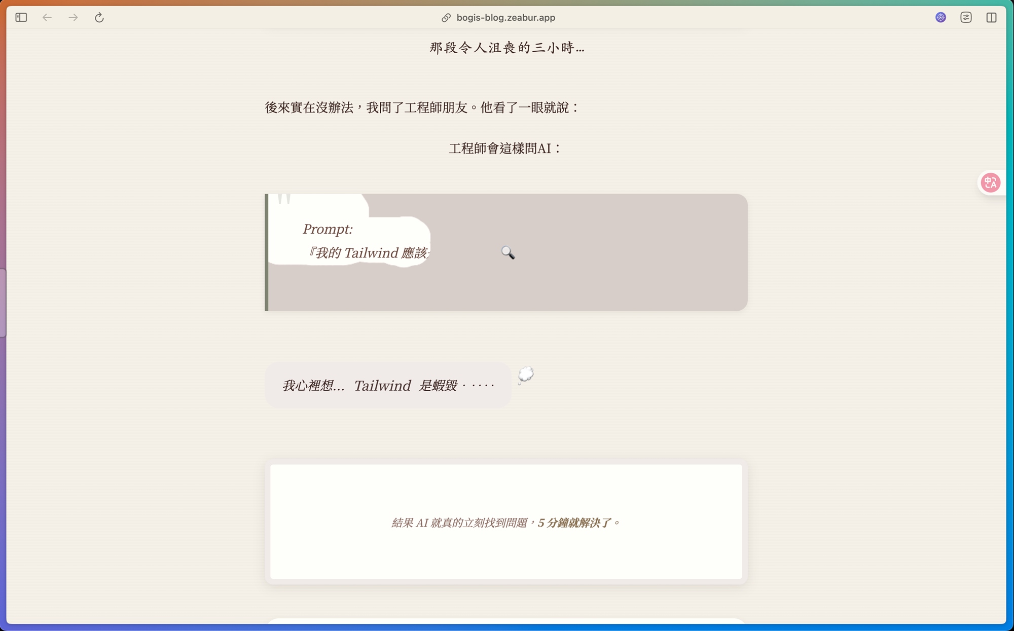 其實我自己也完全不懂程式,不會寫一行 code。但 AI 就像是我的軟體工程師,陪我一步步解決工作裡的煩惱,把許多「以前辦不到」的小需求,一個個做出來,成就感超級真實。