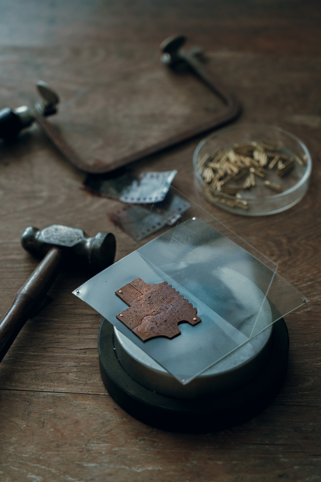 - 體驗技法 : 手工鋼印敲字 、 質感壓印 、 拋修銼磨 、 鑽孔 、 冷焊鉚接