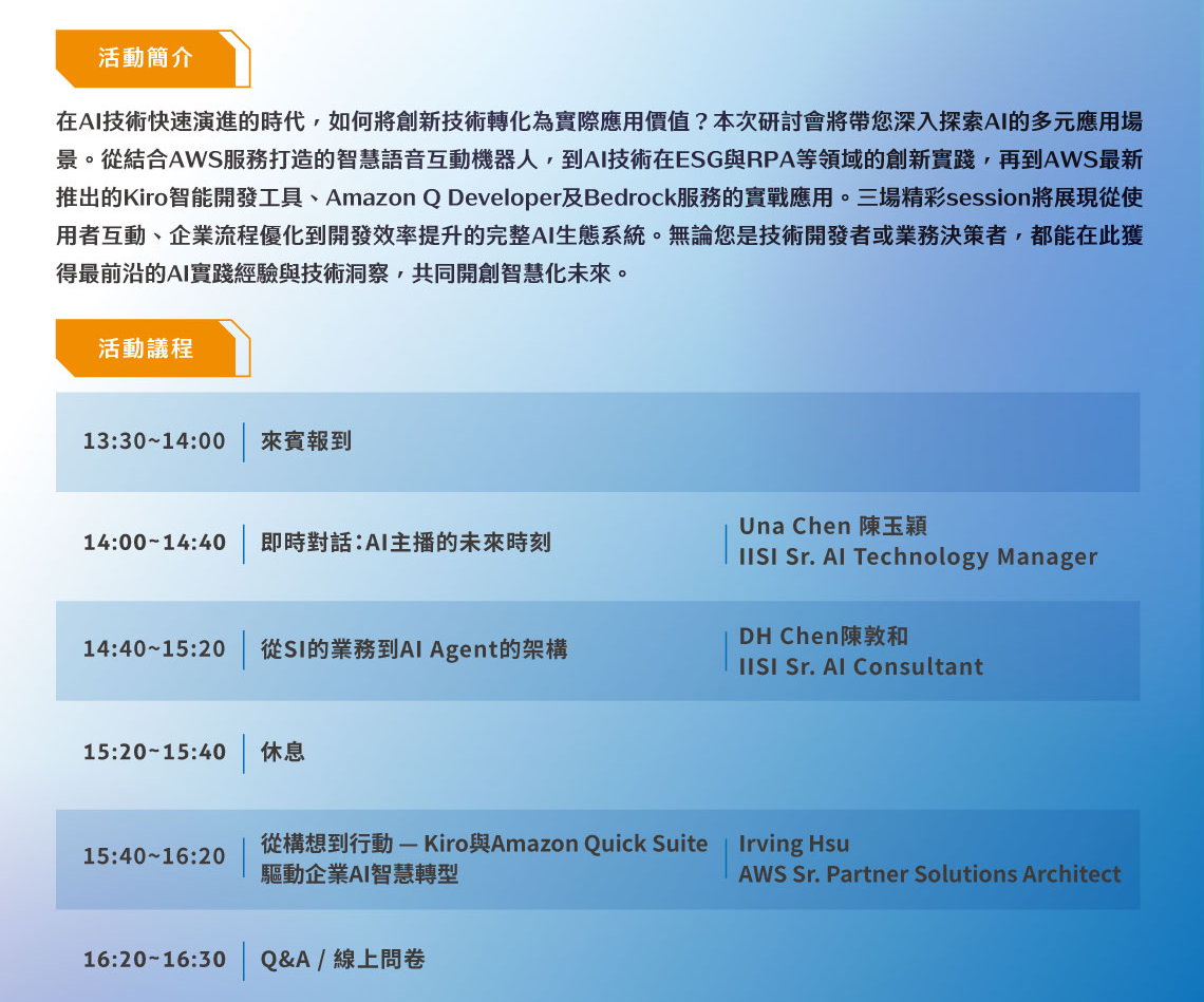 - 對於活動相關資訊有任何疑問,歡迎您聯繫我們:iisi-TCD@iisigroup.com。
