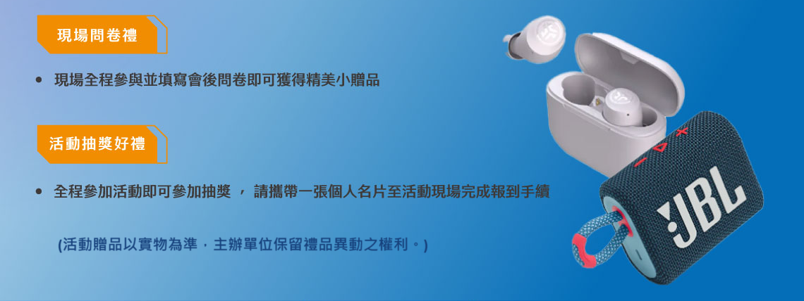 - 主辦單位得保留活動贈品、議程、講師等相關變更之權利。
