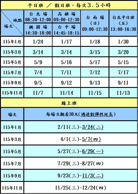 | ‧ 報名須知 | ‧課程內容及開課時間協會保留更動之權利! | |||||