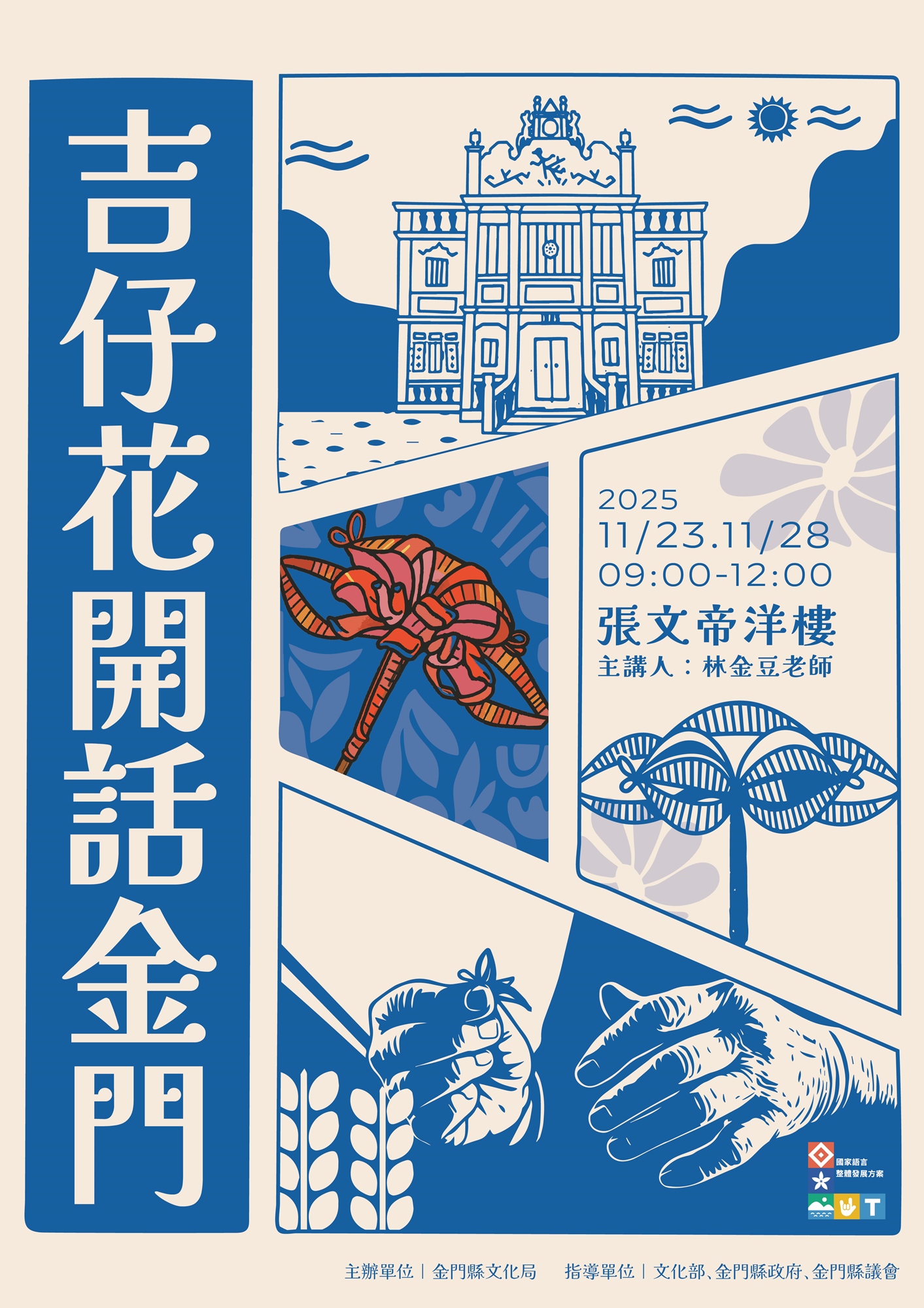 在這場文化體驗裡,我們將一同走進古洋樓,聆聽纏花的歷史、學習金門的語言,親手纏出屬於自己的「吉仔花」。