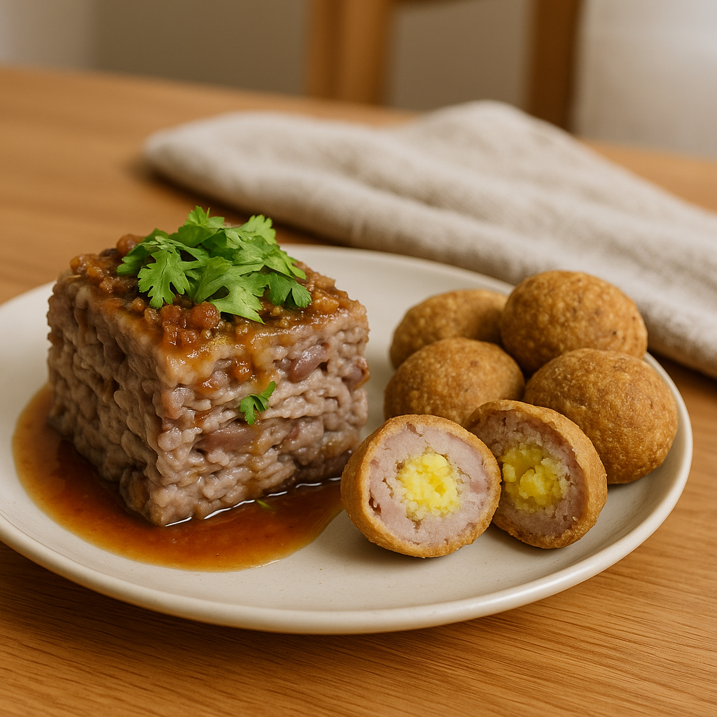 ▲成品:蛋黃芋丸10粒、台南芋粿1條約600克