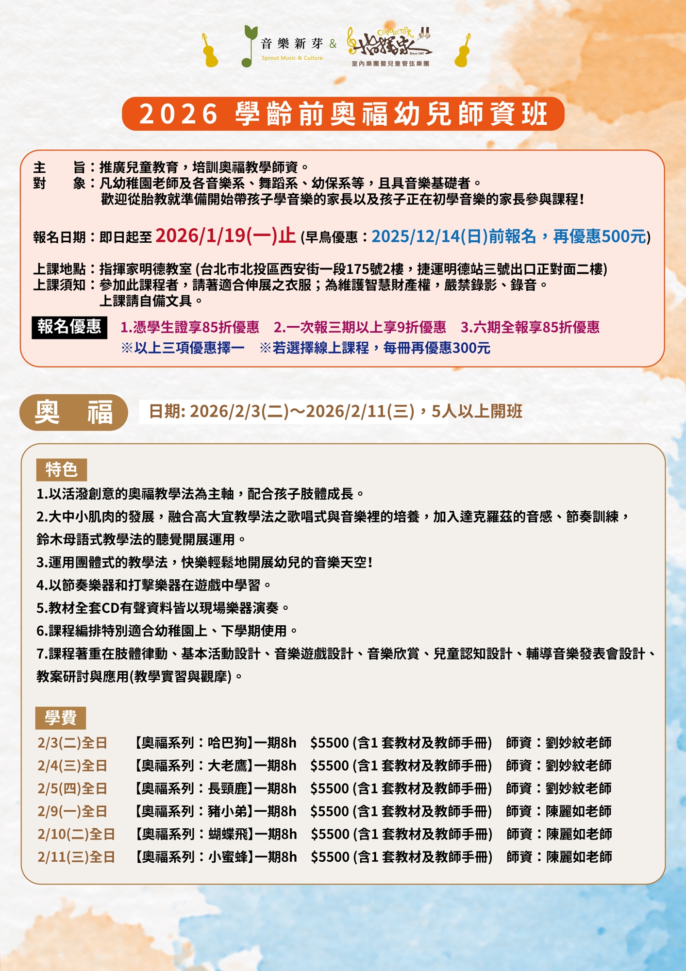 地點:指揮家明德教室(台北捷運明德站3號出口正對面)(地圖)