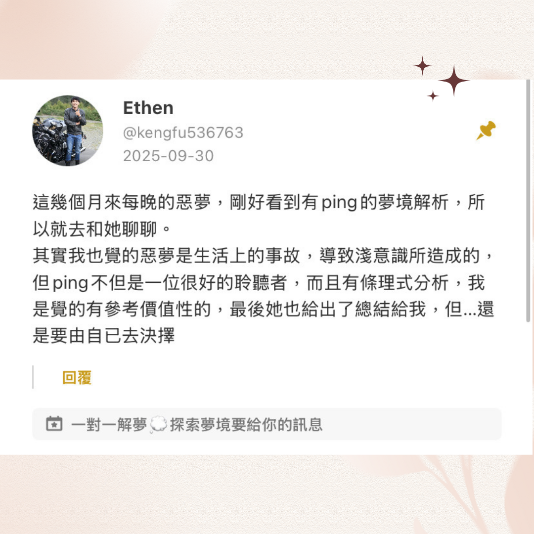 🗓️預約連結:https://cal.com/pingping/dreamreading