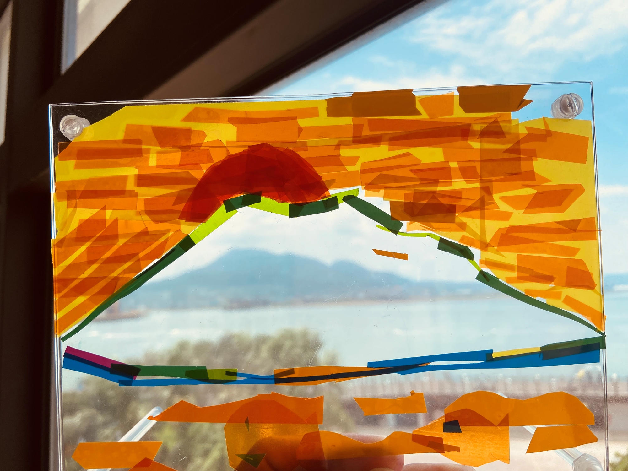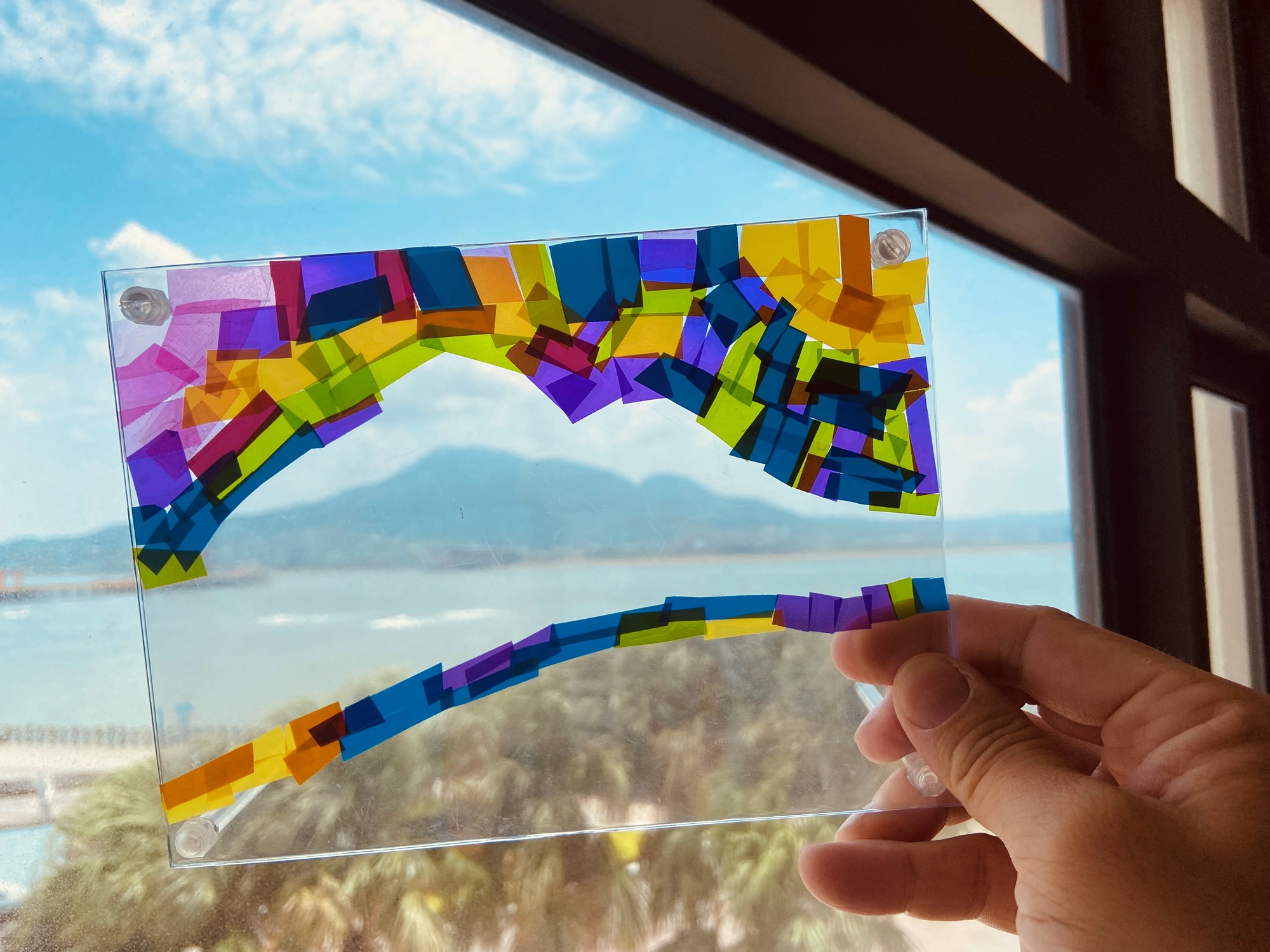 我們如何看待周圍的風景跟心裡的感受?風景之於我們有另一個更重要的意義:這個風景裡有了誰?因此藉由小朋友鋪陳城市之外的天空:鋪陳這城市內在的心情,以天空的顏色展示情感。而中間空下來的透明區域,裝著則是我們生活在這塊土地的人事物,小朋友可以將這個相框展示以動到任何之於他自己而言,那些有意義且珍惜的事物。