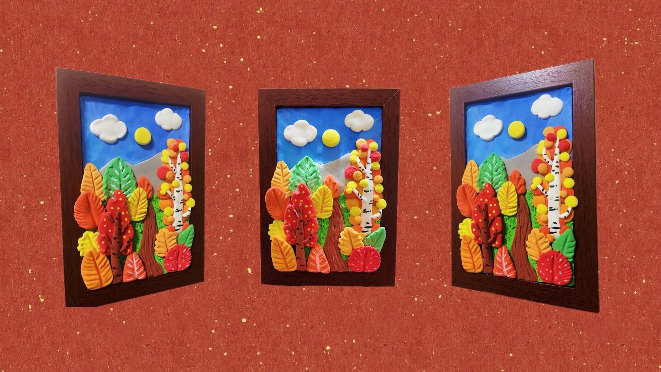 這堂課中,我們將以「相框」為畫布,運用黏土自由創作屬於你的秋日風景。