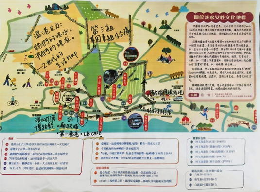 此底圖為淡水社區大學之女性文化地標地圖,此為課堂討論圖。