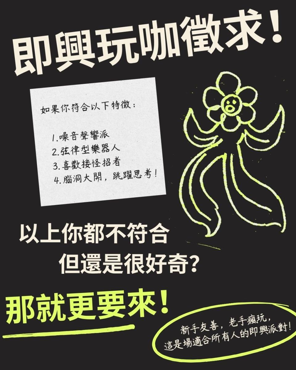 ☑ 歡迎攜帶樂器加入 Jam,無需音樂背景、不限領域