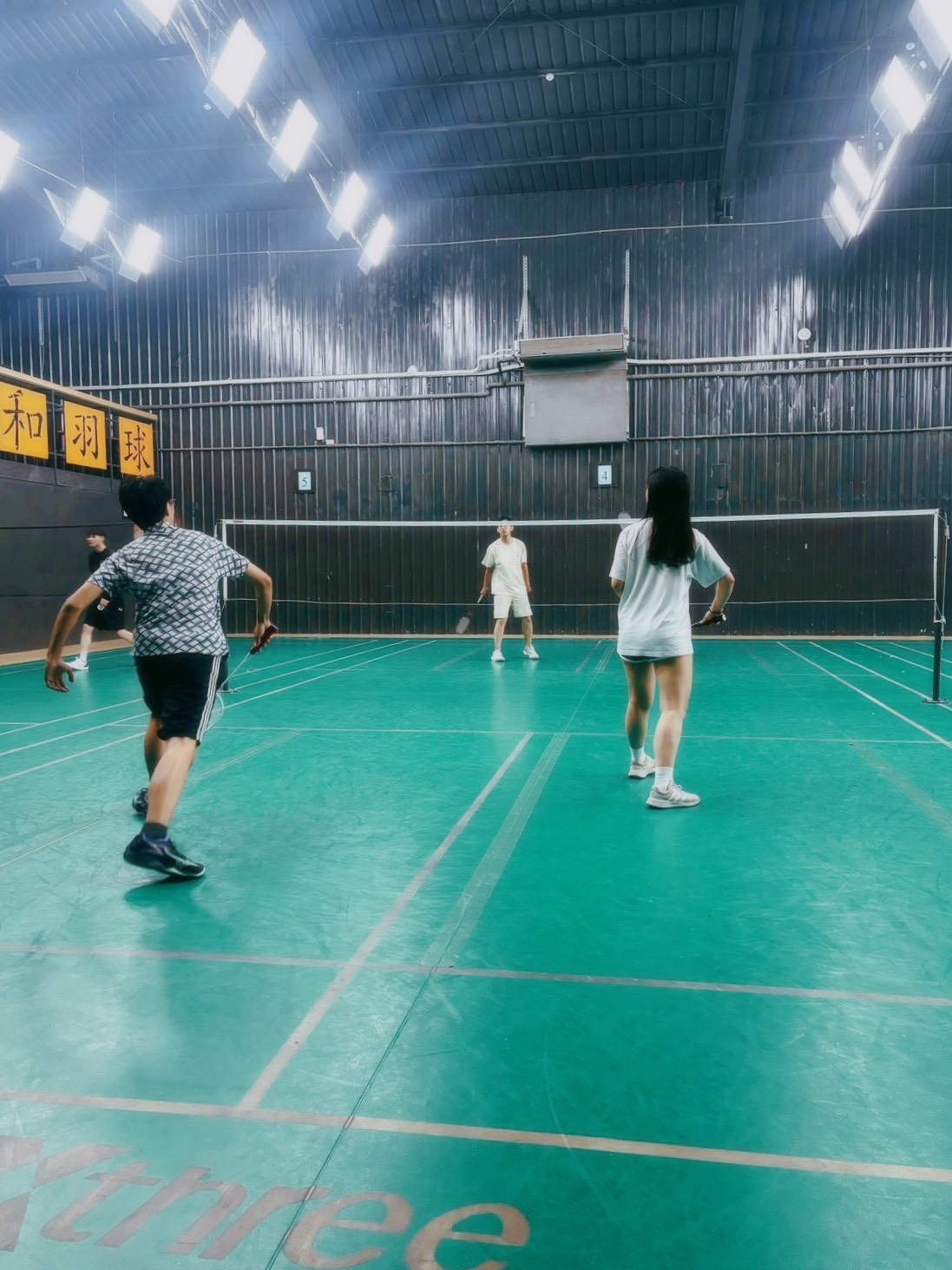 這場 badminton 是為了想要體驗羽球,或是喜歡交朋友,但是怕自己沒有那麼厲害,帶著輕鬆愉快的心情,和彼此聊聊天、打打球。沒有硬性規定,卻充滿歡笑。