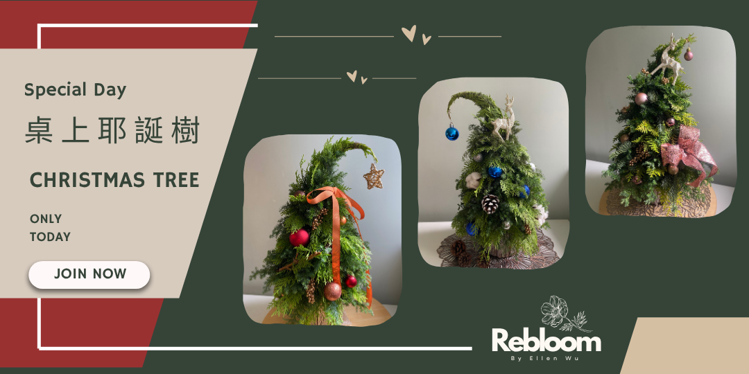 在這堂溫暖的冬日課程裡,Ellen 會先親自示範製作流程,接著由學員親手創作屬於自己的桌上耶誕樹。所有花材與材料皆由老師準備,學員只需帶著好心情與一個50 公分以上的大環保袋(方便帶回作品)。課程地點位於台北市南京三民站附近的工作室,環境自在、氣氛溫馨,就像到朋友家作客一樣,除了享受創作的樂趣,也能認識新朋友、共享節日的暖意。成品高約 50 公分,新鮮的扁柏與雪松為基底,再加上自選裝飾物,打造屬於你個人風格的耶誕樹。。