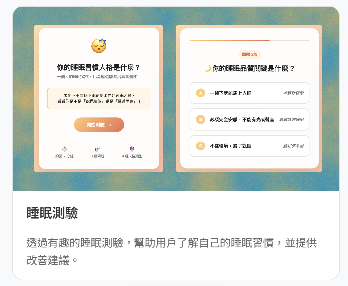 透過互動遊戲,讓用戶主動參與你的品牌故事。當他們在遊戲中探索自己的個性特質時,不僅玩得開心,更與你的品牌建立深度連結。