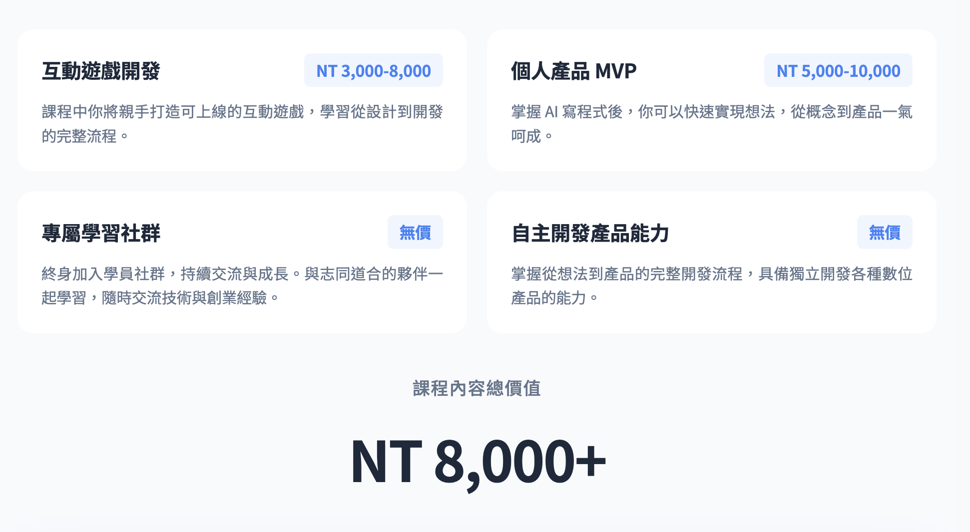你將掌握從想法到上線的完整流程,學會如何用最簡單的方式,將創意轉化為可用的產品原型。