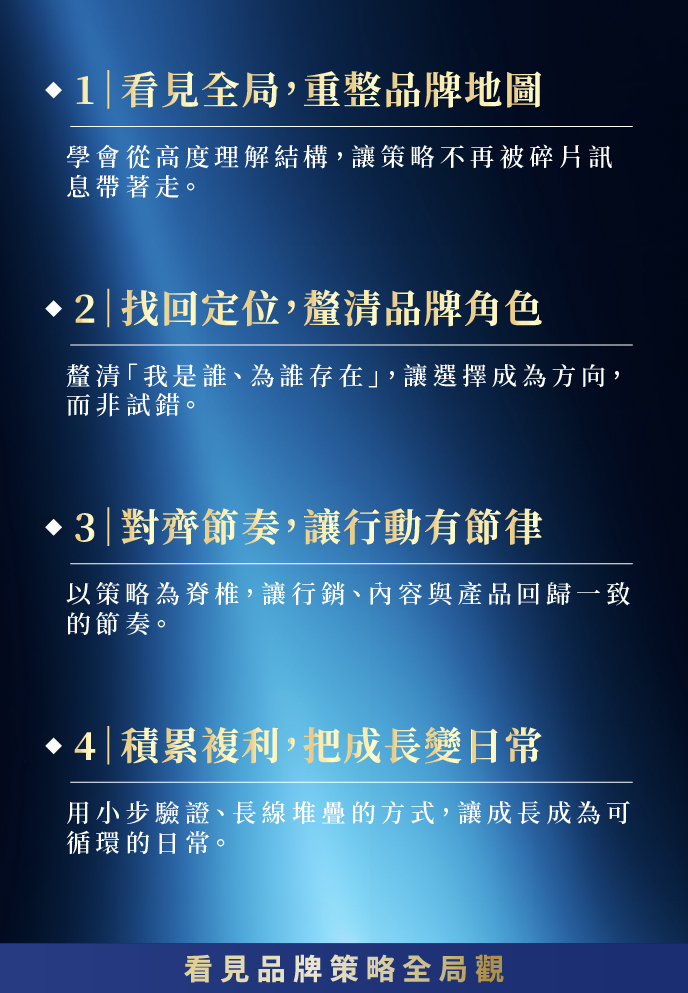 從品牌的全局視角出發,理解為何卡關、該往哪裡轉,