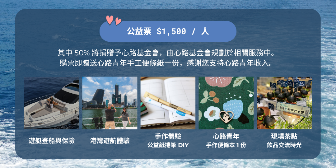 購票即贈送心路青年手工便條紙一份 (登艇時領取),感謝您支持心路青年收入。
