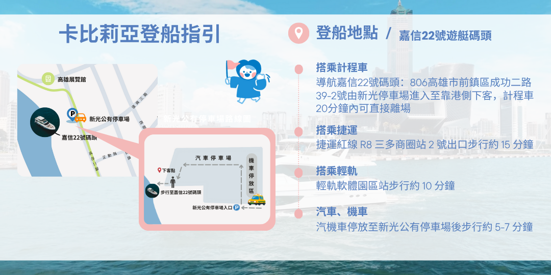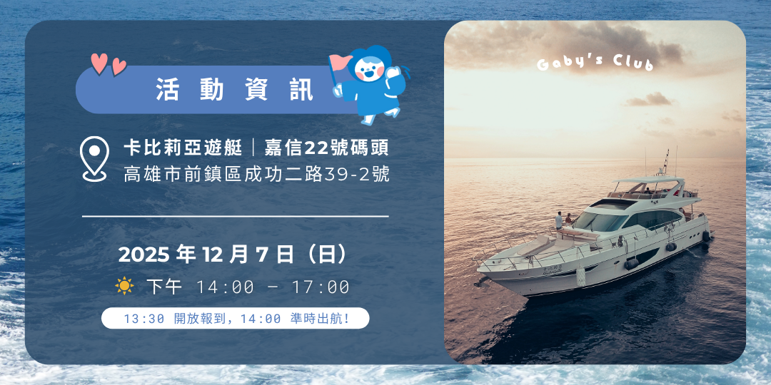 地點| 卡比莉亞遊艇(嘉信22號碼頭|高雄市前鎮區成功二路39-2號)