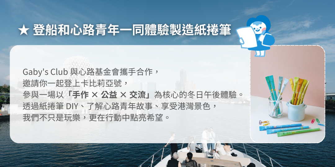 12 / 7 《Gaby’s Club 暖光出航》邀請您一同在海上延續善意。