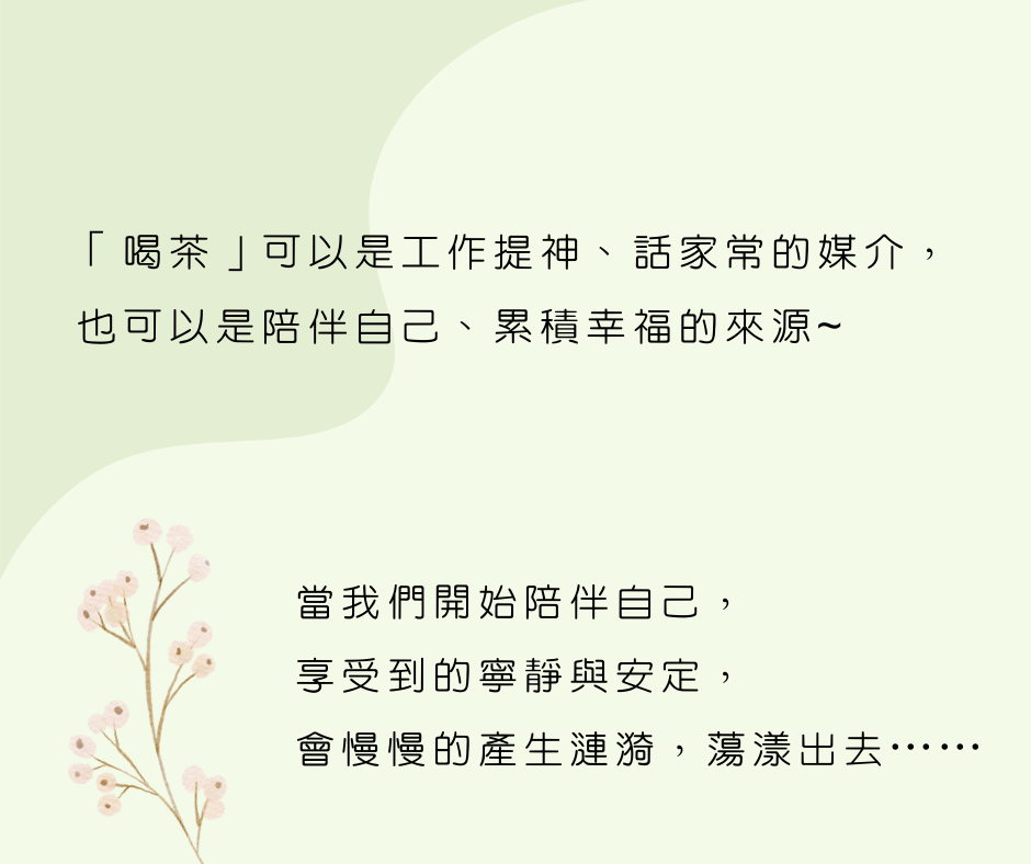 因緣際會下,有一段時間在茶館工作,除了對於茶的知識更寬廣,也感覺到喝茶靜心這件事更是一座連結內外的橋樑。