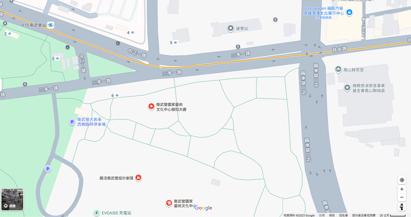 建議依出發地點使用 Google 地圖導航 搜尋「衛武營國家藝術文化中心」,可獲得最快速、最準確路線指引。