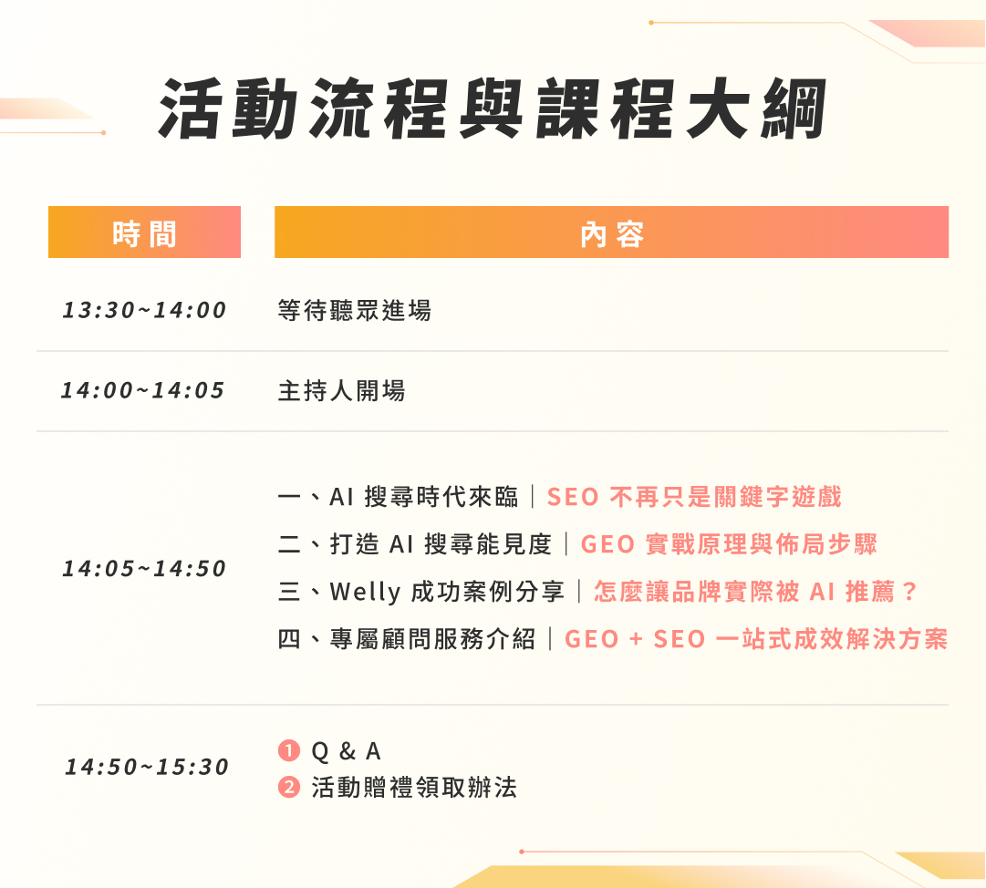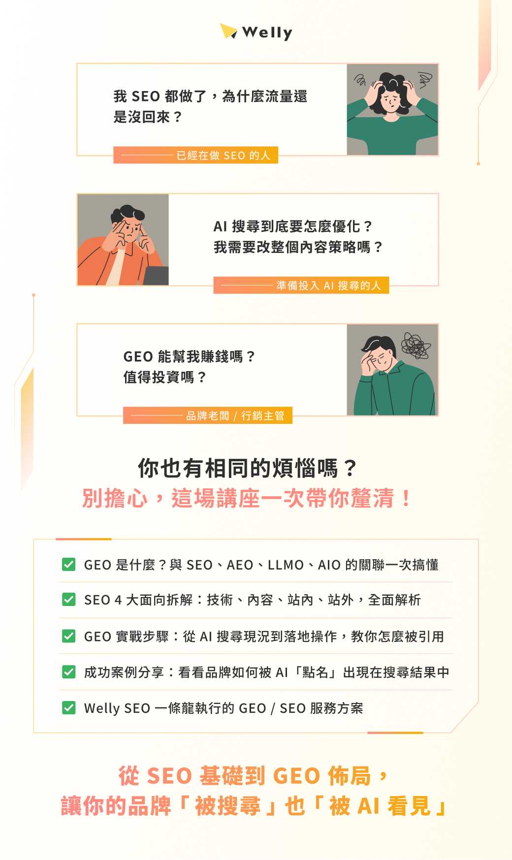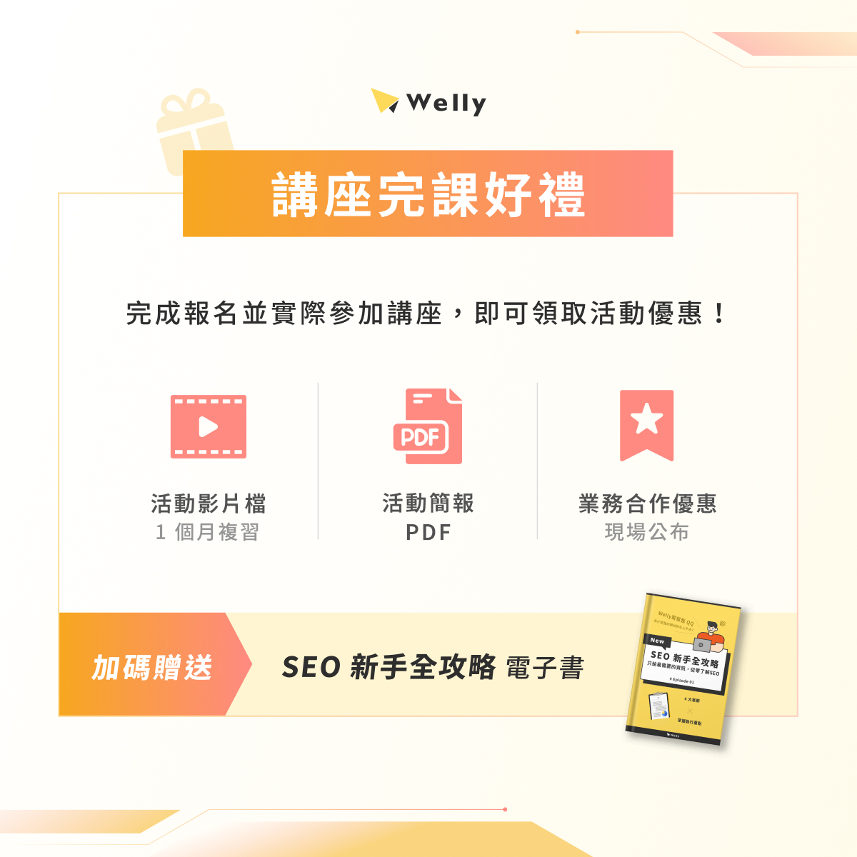 📩 一起加入這場 Welly SEO 的實戰講座,掌握 AI 搜尋時代的關鍵優勢。